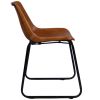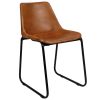 The Patriot Skid Frame Side Chair is a metal frame with a tan leather seat . This product is a stocked product and is ready to ship.